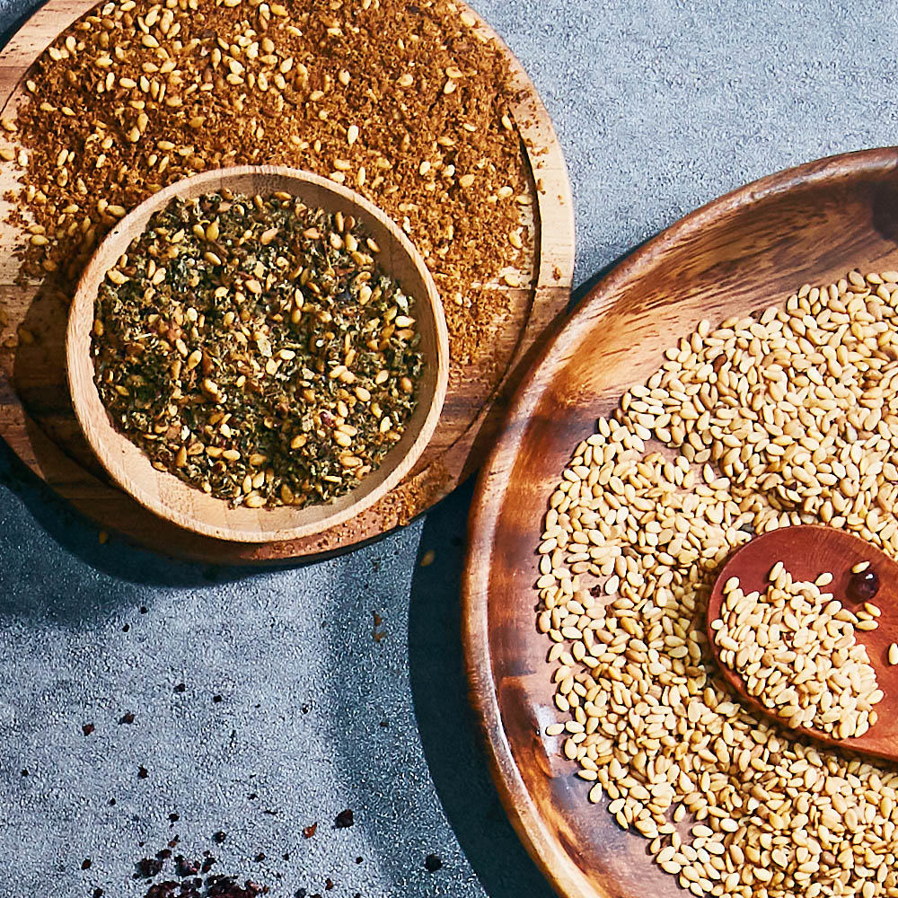 A blend of Levantine spices, toasted sesame seeds, crushed wheat and fiery chilli, this duqqa is boldand spicy. Season eggs, grilling meats, or vegetables with this earthy blend.